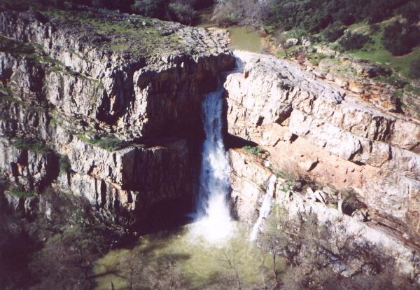 - Rodeados de jaras y encinas surgirá ante nuestra vista un barranco adornado por escarpados farallones de roca y nuestros oidos enseguida descubrirán el trueno creado por la violencia del agua al caer. Dependiendo de la época del año en el que nos encontremos, la cascada caerá con más o menos intensidad. Si queremos ver la zona en todo su esplendor, siempre es recomendable venir cuando hemos tenido una o dos semanas de lluvia intensa. Hay ocasiones en las que, en las noches de invierno, incluso se puede oir el rugido desde el pueblo.