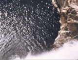 - Ahora que estamos en la zona, podemos tomar dos opciones: la primera continuar el curso del río para pasar a la siguiente cascada, la del Charco del Negrillo, o subir para acceder a este lugar dando la vuelta al monte en el que nos encontramos. Sólo aquellos que se conocen el área se atreverán a seguir el curso del río, por el que una vez que salvamos uno de los desniveles bajando por un árbol, pasaremos a un paisaje en el que iremos saltando y sorteando unas descomunales moles de piedra caidas desde lo alto de la Plaza de Armas. Encajonados en el barranco llegaremos al Charco del Negrillo, segunda laguna de tamaño superior a la de La Cimbarra, pero con una cascada más pequeña.
