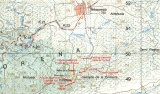 - El mapa de la zona que aquí adjuntamos muestra lo escarpado del lugar (la distancia entre cada curva de nivel es de 20 metros). No recomendamos buscar las pinturas rupestres si no sabemos dónde están, dado que lo único que encontraremos será una gran decepción. Siempre aconsejaremos ponernos en contacto con algún guía experto (ver nuestra sección de enlaces o de información útil nos guiará por los abrigos de roca. (Mapa cartográfico de la zona:Tamaño de cada recuadro azul: 1 Km. Distancia entre curvas de nivel: 20 metros)